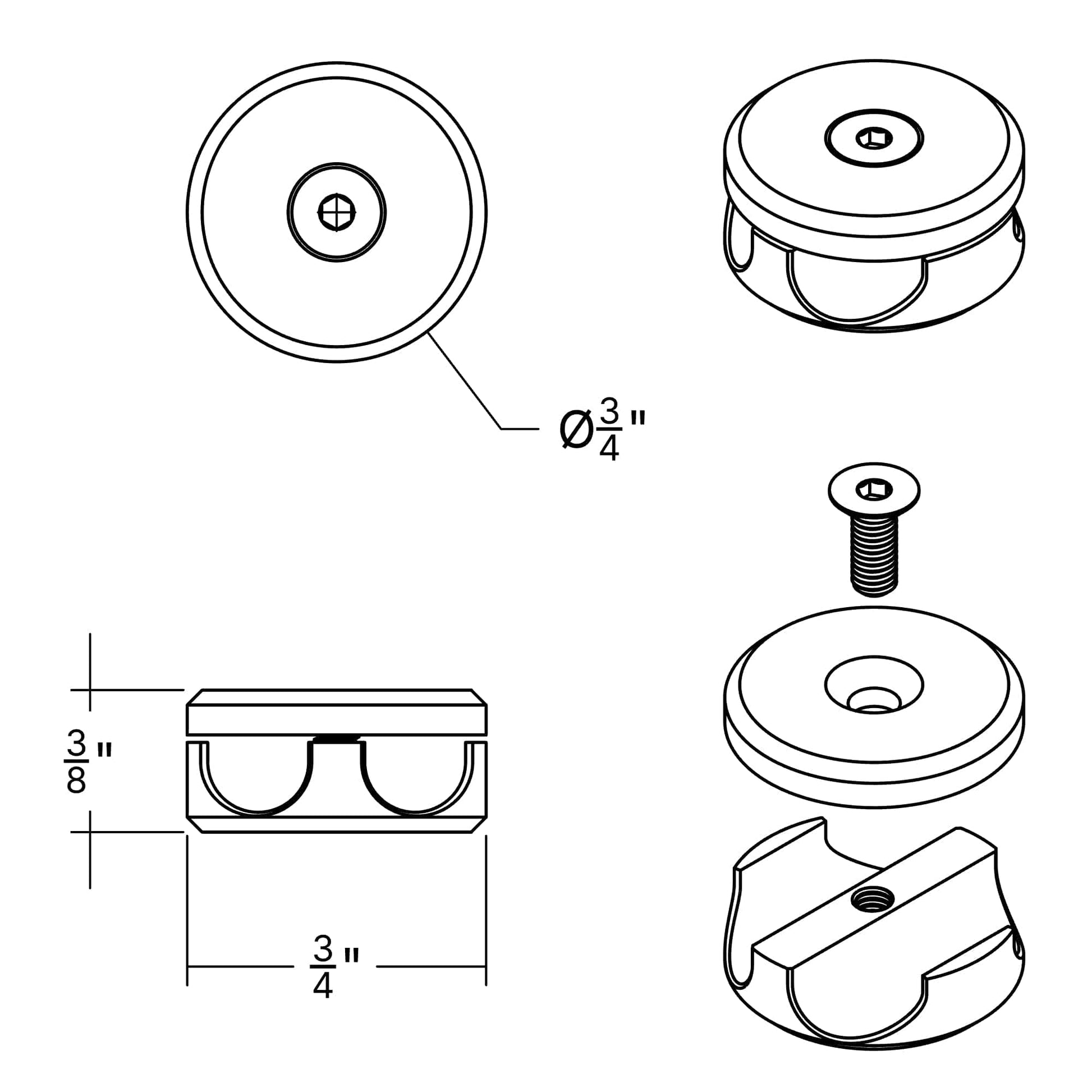 - Diameter: ¾ in (20mm)